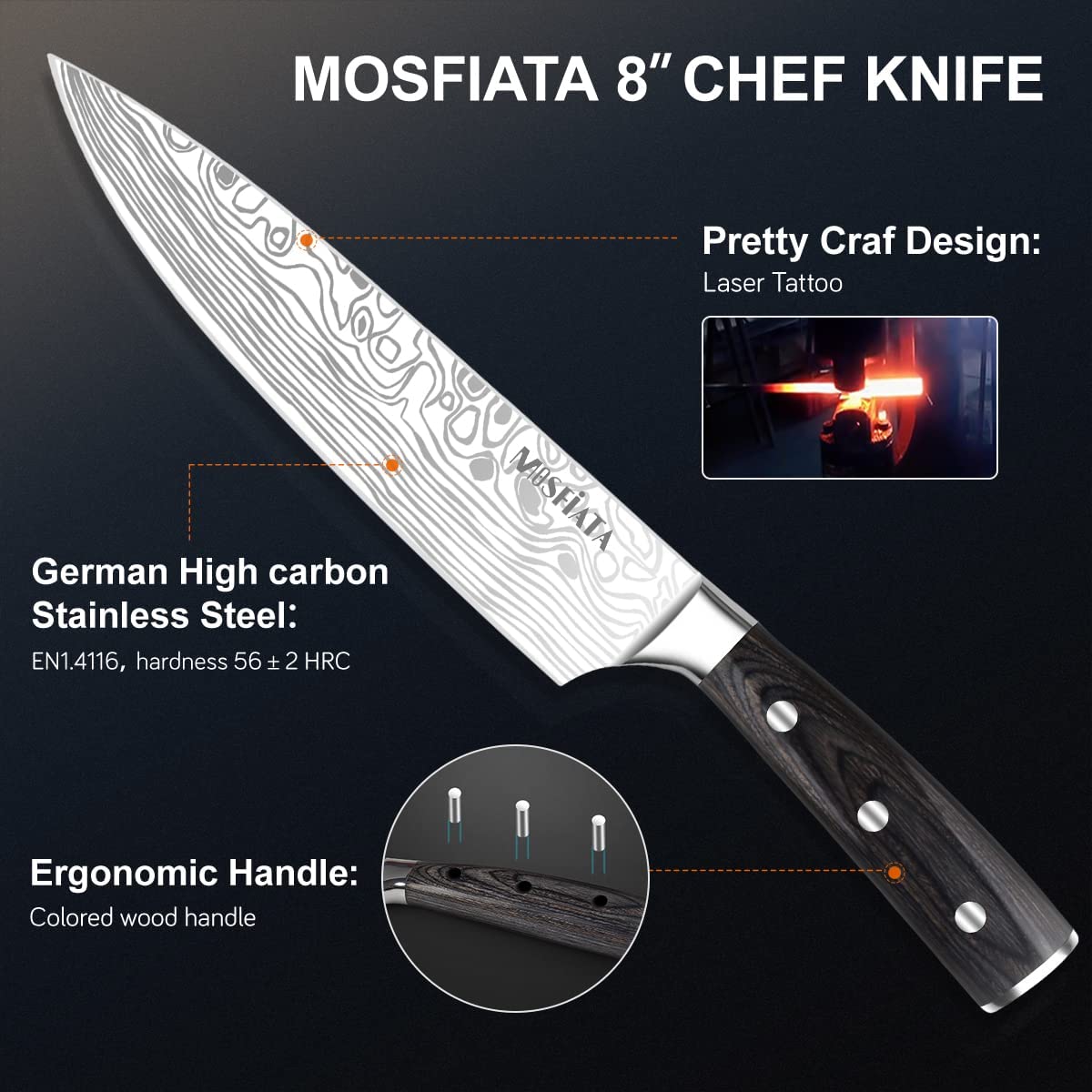 【Best Gift】MOSFIATA kitchen knife set is equipped with scabbard and a premium box. It is an ideal gift of choice for birthday,wedding, anniversary,Mother's Day,Father's Day,Christmas,chef,family warmth and so on.